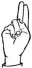 На ћирилици написано РАДОВАН ГРИЈАК састоји се из 13 слова [?]. Исписано ћириличном једноручном азбуком за глувонеме: